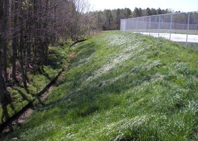 Topsoiling and grass seeding can provide either short- or long-term cover on disturbed areas. Once established to 80% coverage, the vegetation protects exposed soils from raindrop impact, reduces the speed and amount of runoff and binds the soil particles together.