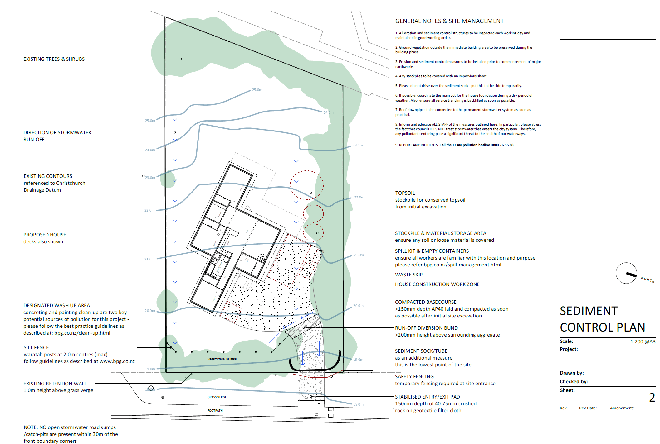 - How to prevent erosion and sediment run-off on site reaching gutters, drains, streams and rivers.